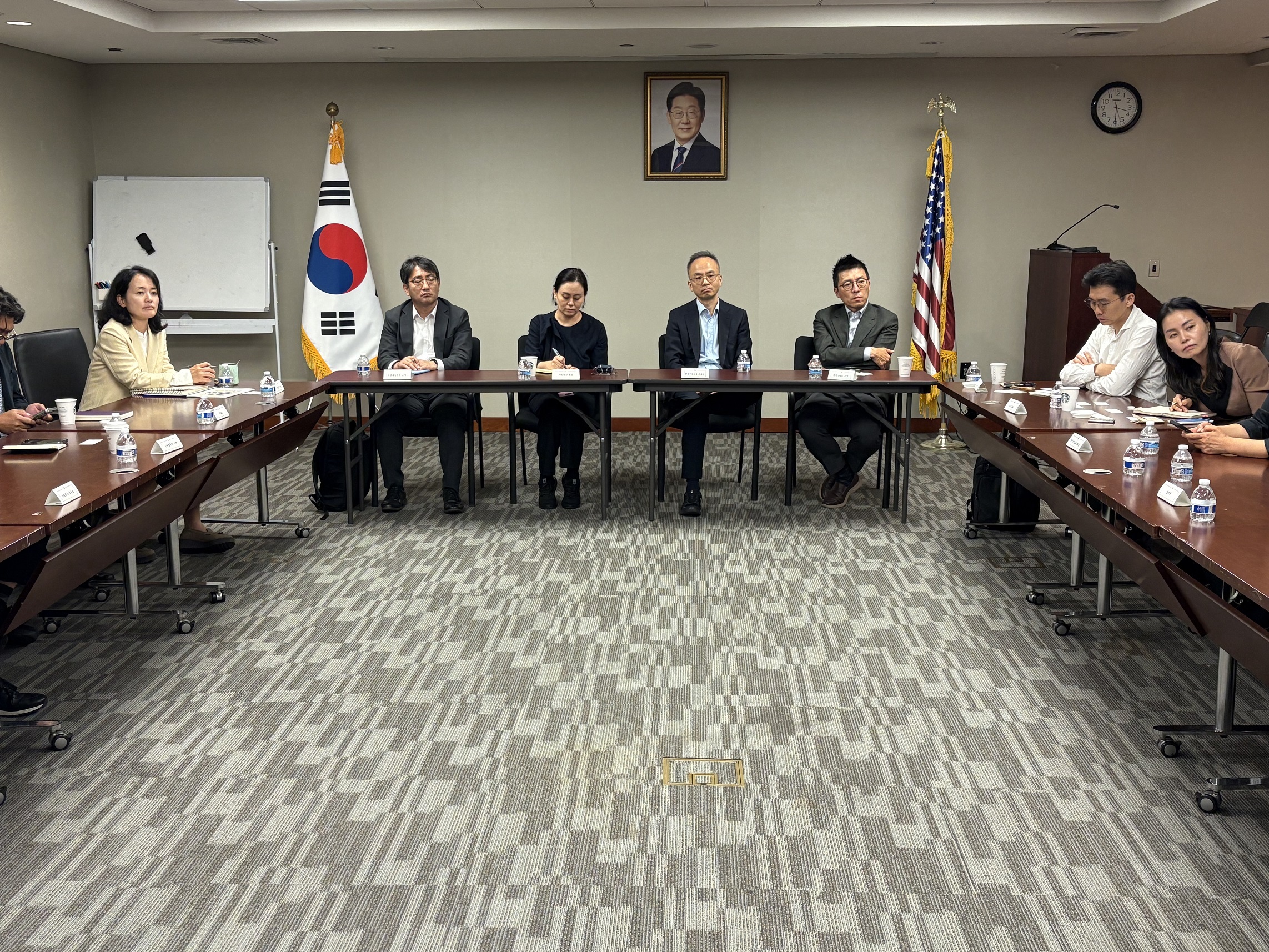 주뉴욕총영사관은 9.30(화) 뉴욕총영사관 관할지역 제 6차 공공‧유관기관 협의회를 개최했습니다. 박문규 경제부총영사 부임후 24.6월부터 시작된 협의회는, 총영사관 경제팀과 함께 한국은행, 금감원, 한수원, 산업은행, 관공공사, 코트라 등 현재 총 24개 기관이 분기별로 모여 미국 경제 전망과 한국 경제 관련 월가 현지 반응 등을 수시로 점검하고, 각 기관별 현안 및 애로사항을 공유하며 협력하고 있습니다. 이번 회의에서는 특히 우리 정부의 관세 협상 등 산적한 과제와 혁신 경제 도모 방향에 대해 논의하는 시간을 가졌습니다.